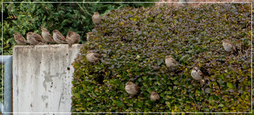 Natürlich hat sich auch wieder Besuch eingestellt. Spatzen sind familiär, leben in kleinen Kolonien zusammen und fliegen auch gern gemeinsam zur Inspektion neuer Futterplätze. Ein ganzer Pulk von immer hungrigen, neugierigen Flugkünstlern hüpft nun fast täglich auf seiner Terrasse herum und will versorgt werden. So steht jetzt auch eine Vogeltränke bereit, die unser Vogelfreund immer mit frischem Wasser füllt und die gern genutzt wird. Der Tisch ist sozusagen für alle gleichermaßen gedeckt.